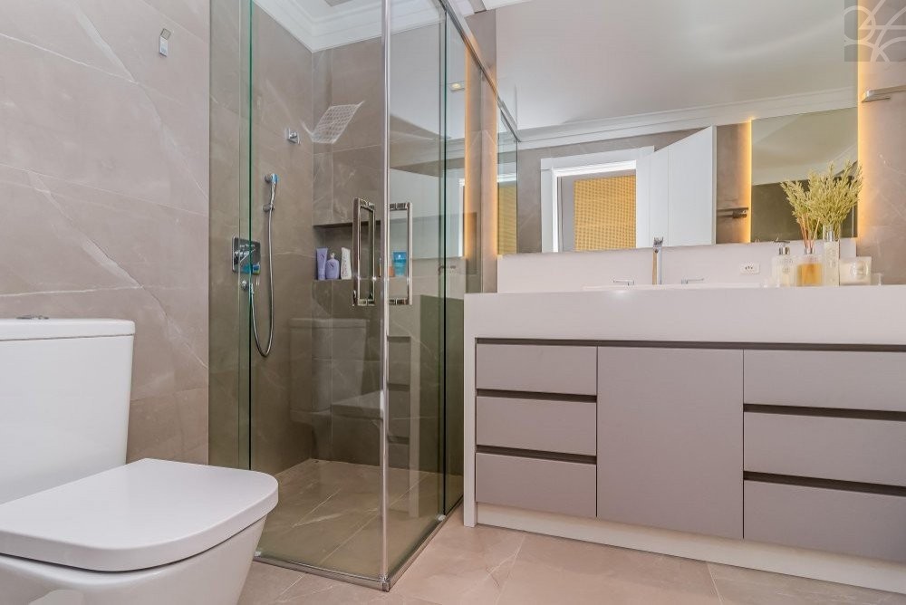 O apartamento conta com 4 suítes, sendo 2 suítes frente mar equipadas com banheira de hidromassagem, proporcionando momentos de relaxamento com vista privilegiada. Todo o imóvel é climatizado, automatizado e pensado para proporcionar uma experiência de moradia prática e personalizada.